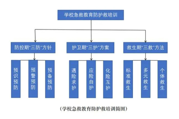 其中,学校急救教育遇险扶伤求护,旨在通过掌握个体遇险扶伤求护、家庭遇险扶伤求护、校园遇险扶伤求护的信号,明确在危险关头寻找帮助的正确方法,达到有效地减轻“伤症”,降低伤残率。学校急救教育应险扶伤自护,旨在通过掌握个体应险扶伤自护、家庭应险扶伤自护、校园应险扶伤自护方法,明确在危险关头寻找应险扶伤自护的正确方法,达到有效减轻“伤症”,降低伤残率之目的。学校急救教育化险扶伤互护,旨在通过掌握个体化险扶伤互护、家庭化险扶伤互护、校园化险扶伤互护方法,明确在危险关头寻找化险扶伤互护的正确方法,达到有效减轻“伤症”,降低伤残率之目的。