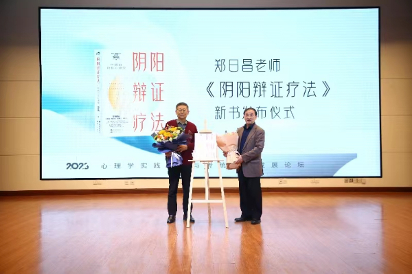 世界中医药学会联合会中医心理学专业委员会会长、中国中医科学院原副院长汪卫东教授作了题为《系统发展中医心理学,探究本土化心理技术方法》的报告,并和郑日昌教授一起为其新书《阴阳辩证疗法》揭牌。