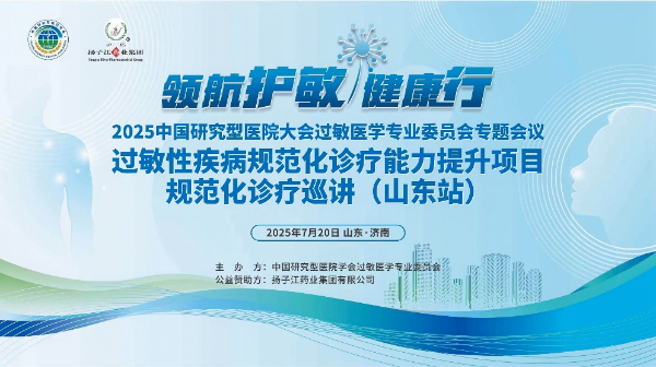 由中国研究型医院学会过敏医学专业委员会主办、扬子江药业集团公益支持的我国首个过敏性疾病规范化诊疗全国巡讲“领航护敏健康行”活动正式拉开序幕。首站(山东站)于7月20日在山东济南举办。此次活动,山东各地皮肤、耳鼻喉、呼吸、儿科、变态反应科的60余名医护工作者汇聚一堂,通过专业授课、病例解析、多学科研讨,探索过敏性疾病规范化诊疗新路径。