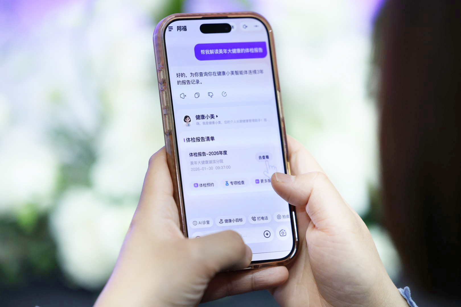 循证建议,专业可靠——针对检出的异常指标,“健康小美”依托美年长期积累的临床医学知识库与循证医学路径,生成个体化的健康干预方案与就医指引,帮助用户明确后续行动方向,实现从“发现问题”到“解决问题”的专业衔接。