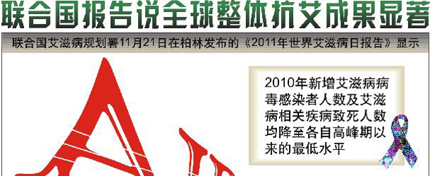 2011年12月1日是第24个“世界艾滋病日”,我国宣传主题“行动起来,向‘零’艾滋迈进”。