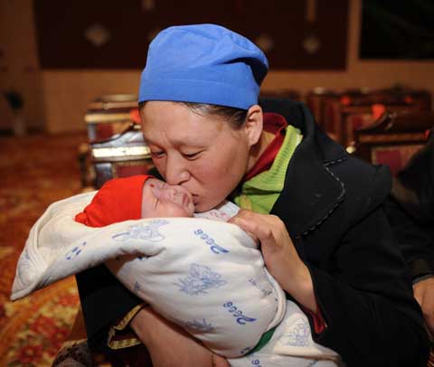 在妈妈怀里的