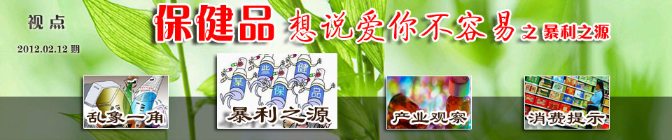 保健品暴利暴露监管乏力 除了对保健品的产品、广告审查之外,我们如何对保健品价格加强审核和监管?我们如何打击与杜绝保健品的暴利?医药专家曾指出:只有把住了产品、广告与价格这三扇“大门”,才能从根本上管理好保健品市场,使其走上良性发展的轨道,造福于民。 …[详细] |