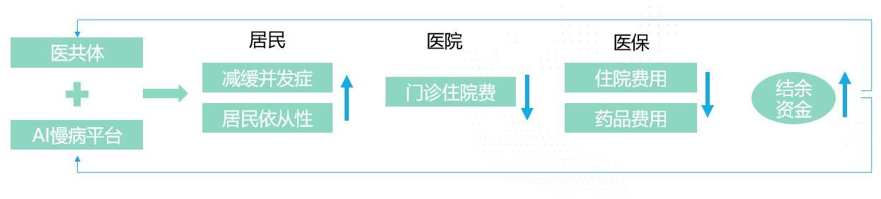 医防融合管理。该模式采用“医保资金前置”方式提供配套资金和通过有偿签约的方式解决初期智能硬件资金投入的问题,通过人机协同的慢病管理,降低高血压相关心脑血管疾病患者的整体住院率和费用,实现家庭与医疗负担双重下降,并通过人财物一体化考核管理,实现医保支出节约、医共体医保资金结余、居民健康水平提高三位一体的良性循环。