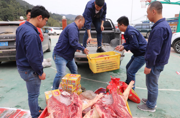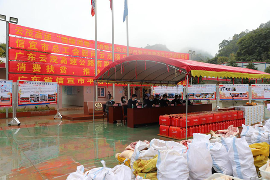 活动中,云茂高速向各参建单位发起号召,共同采购了6万元黄牛肉、3万元土猪肉、3万元本地家鸡及1万元竹笋等本地贫困户的农产品,折合人民币13万元;并从广东扶贫销售平台购买了3万元贵州、新疆、广东梅州等贫困地区的腊肉、腊肠、干果等帮扶产品,地方总工会也提供了共计2万元的助农产品,用于慰问一线建设者。
