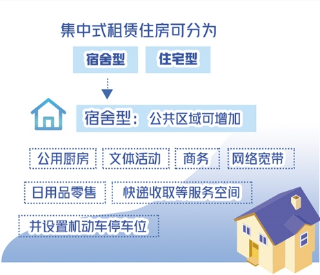 郭景介绍,宿舍型租赁住房一般面向单身人士、青年人供应,为满足其社交等方面的需要,同时增加生活的便利性。《通知》明确,建筑内公共区域可增加公用厨房、文体活动、商务、网络宽带、日用品零售、快递收取等服务空间;房间内应加大储物空间,增加用餐、会客、晾衣空间,应设置信息网络接入点;可设置卫生间、洗浴间和起居室;新建宿舍型租赁住房应设置机动车停车位,并预留电动汽车、电动自行车充电设施空间。