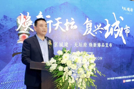 在开幕式上,北京城建兴瑞置业开发有限公司总经理李克锐表示:“在城市更新、内城更新的发展框架下,北京城建秉承保护历史底蕴,尊重生态文脉的理念下,将位于东城二环,天坛旁的天坛府打造为新中式住宅。”
