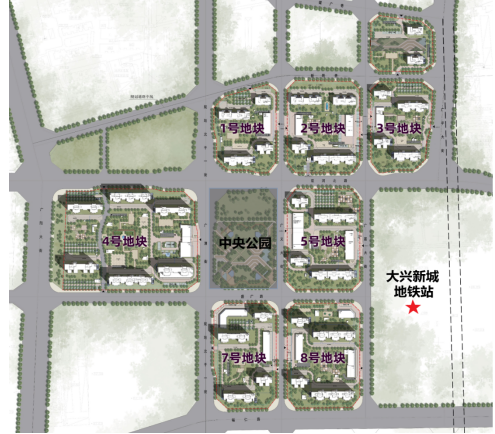 项目绿化率为30%,在设计上,利用独有资源,构建多元立体的生态环境,通过植物、花卉、小品、景墙等元素的搭配,形成花园主题社区。在功能上,以1.3万平方米的中央公园为核心,同时各组团内配有公共会客厅、儿童活动区、健身休闲区、篮球场等功能空间,打造全龄互动式社区。社区卫生服务站、老年活动中心、菜市场、6000余平方米的社区商业配套以及未来规划的大兴新城地铁上盖商业,更是切实改善居民生活配套条件。