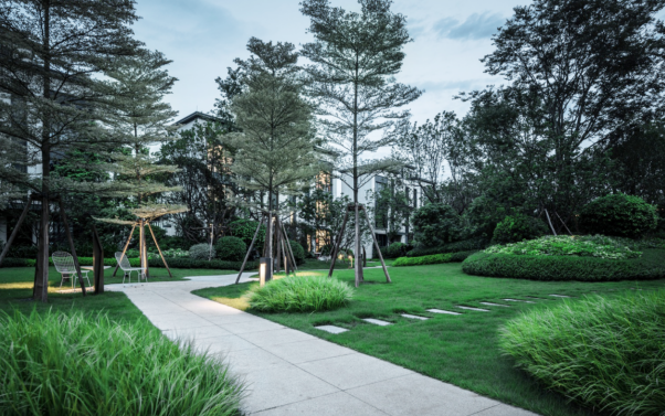 入户绿化既有养眼的绿意,也有高低错落有致的主团。后花园与街道之间已经在停车位背后有围墙隔离,种上灌木后,非常好地保证了私密性;别墅围墙做了特别的设计,成为了景观的一部分;同时,设计了带人体感应功能的雨棚,非常方便;广阔后花园的空间,业主可以根据自己的喜好,打造独属自己的后花园风格。