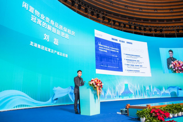 图:龙湖集团冠寓及产城总经理刘磊现场发言
