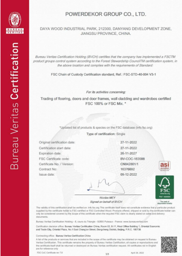 圣象高质量发展源于对绿色产业链的坚持和责任。2022年11月27日,圣象集团有限公司顺利通过FSC森林认证中的产销监管链认证,从原木的运输、加工到流通整个链条均得到严格鉴定,圣象地门墙全品类产品均源自于经营良好的森林。此项认证的获得,意味着圣象在对地门墙全品类木材加工各个生产环节均通过了FSC链条监管与确认,更是对圣象高质量发展绿色环保具体行动的又一力证。而对于广大用户而言,选择FSC认证的产品,就是选择环保健康的生活,就是对家人更好的呵护,同时也是一点滴行动践行环境保护。