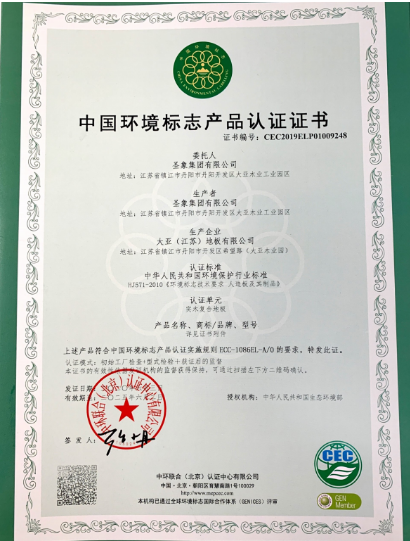 无独有偶,自2000年以来,圣象实业(江苏)有限公司等各工厂获得中国环境标志产品认证。这一认证体系从标准和实测监督的角度证明企业环保标准的先进性、环境行为的友好性和持续性,是符合国际标准和被量化的环境行为优的综合体现。