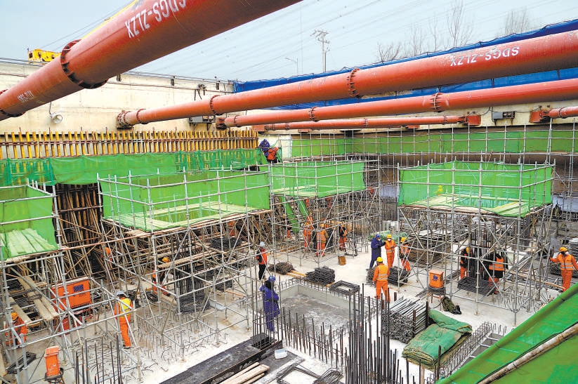 昨天,地铁13号线后厂村站正在紧张施工。车站东侧基坑内,工人们敲打着螺栓,为支撑混凝土模板的三角支架进行加固。接下来,该站将开始盾构机接收部分的混凝土浇筑,为线路隧道贯通做好准备