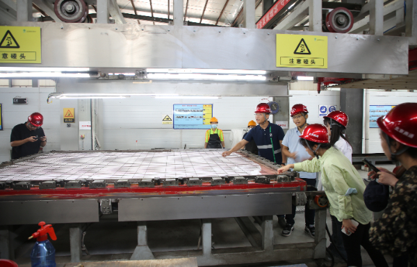 在浇筑区,模具内每块标准的板材中预埋了48个安装背栓,这样的设计既降低了裁切损耗,又保证了施工的精确性、快速性和安全性。随后,模具被运到一个高精度的智能温控窑炉中进行养护,它可以精确地按照设计的要求进行升温、恒温和降温,确保8小时后出炉的每块板内在质量都达到最佳。