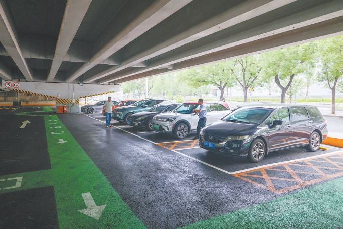 记者在桥下停车场看到,新施划的停车场标线清晰,地面上还有绿色的行人通道流线,智慧停车设施已经到位,预计7月下旬启用停车场。据介绍,该停车场还计划试点推行新能源汽车移动充电服务。