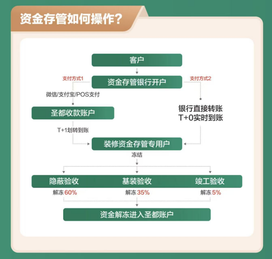 在贝壳整装创新的资金存管服务模式下,客户的装修款项将被冻结在个人银行账户中,在“水电验收、基装验收、竣工验收”等关键装修环节,给予客户充分的“举手权力”,只有在客户确认满意后才会解冻放款。同时,该模式在操作手续便捷性、线上实时查询状态、息本分离等细节设计上充分考虑用户需求,真正实现了对客户好和推动行业进步的双重目标。