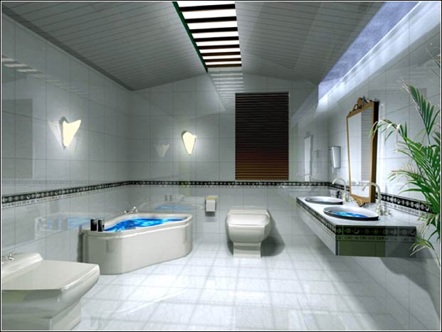 卫生间:宽大恰意的空间,清爽的冷系统,方拱形的采光格栅,含蓄自然的前照明。