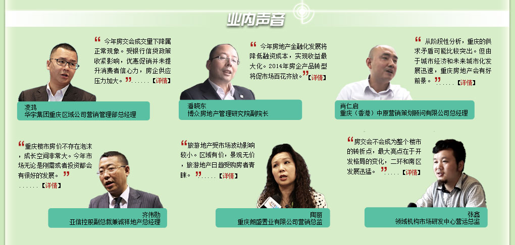 2014年的春交会,不见了海南三亚等热点城市旅游项目的身影,但旅游地产并未因此而显得“惨淡”,许多旅游和度假产品也抓住春交会这个好机会,着力推广度假理念和度假项目。由綦江区、璧山县、万盛经开区等重庆区县带来的旅游地产项目打出旅游“生态牌”,因其优美的自然生态环境,“养身养心又养老”的概念,受到市民的追捧。……[