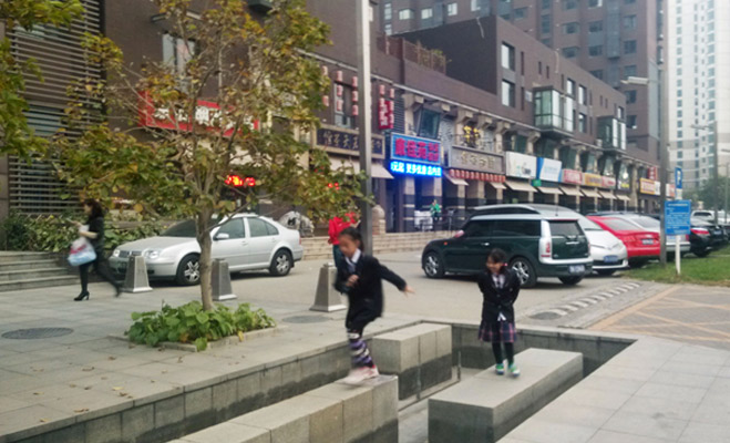 小区共有三个大门,只有一个大门设有门禁,其他两个都可以随意进入,门口没有保安,小区内也没有保安巡逻。小区内的道路车辆可以随意行走,可见没有进行人车分流,并且路上没有缓冲带。小区的外围护栏十分矮,基本上与汽车同等高度,也没有24小时监控设施。