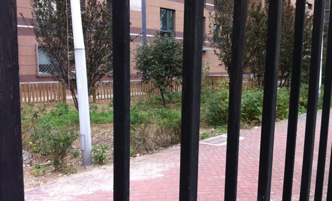小区实现了人车分流,设有门禁,业主需要刷卡进入,门口有保安进行巡逻。不过还是有很多车辆乱停在小区北侧的空地上,记者发现小区地下停车库外墙壁的表面水泥已经脱落。小区外围栅栏墙皮也逐渐脱落。
