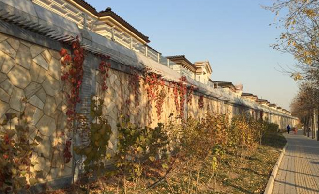 记者探访为工作日下午,虽然距著名的旅游景点——圆明园步行只需要15分钟左右,但周边环境很清幽,丝毫不见旅游景区的嘈杂。在夕阳的映衬下,项目四周的围墙上形成“树影”,与红叶交相呼应,不时还有游客驻足拍照。建筑风格在细节中体现出古香古色,与周边景区的氛围融为一体。