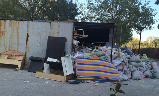 小区整体绿化率较高,记者也看到现场有保洁人员随时在清扫。不过在小区的南部堆满了各种装修垃圾,有业主称,“好多家装修时就把垃圾扔这里,久而久之就多了,也没人处理”。