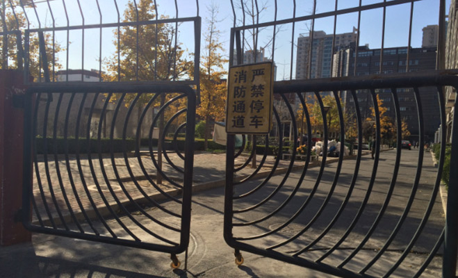 在小区门口的马路上,记者看到停放众多的私家车把宽敞的马路压缩成两条可供单辆车行驶的狭窄车道。在小区的正门,有安保人员值班,不允许外部人员随意进出,不过记者从东边侧门进入,却无保安询问,业主也表示“很多回收家电的小贩可见直接进入小区,对此反应但物业一直没有解决”。