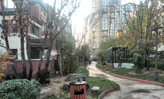 小区内干净、整洁,绿树成荫,但由于小区的体量较小,绿化、水系等景观设计等均让人感觉略显局促。