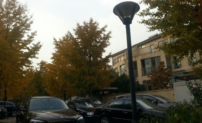 恩济里小区内无地下停车场,一部分车辆停靠在制定位置(地面标有车牌号)另一部分则直接停靠在路边,挤占了部分消防通道的位置。而且在西门电子通知牌附近以及六一小学门口(小学在社区之内)绿植由于长时间无人打理已经显得十分杂乱,其中还充斥着杂草。
