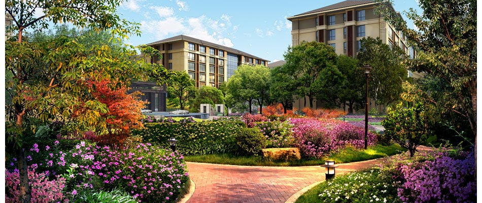 项目总占地6万平方米,建筑面积9万平米,综合容积率约1.3,共17栋楼, 每栋楼均为低密7层建筑,超大楼间距。项目采用五重园林的大师级造园手法, 成树全冠移植,高覆盖大绿量,集合坡地式的立体景观呈现给大家更静谧的环境。