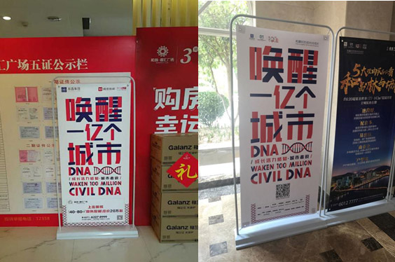 济南公司于新悦广场临时售楼处摆放态度展架,150余组客户扫码参与并转发朋友圈获赠态度环保袋等礼品。