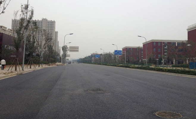 在西红门地区,鸿坤地产的知名度较高,宣传logo也遍布多条主要马路。记者到访时为工作日下午,鸿坤曦望山小区北侧的马路正在铺柏油马路。