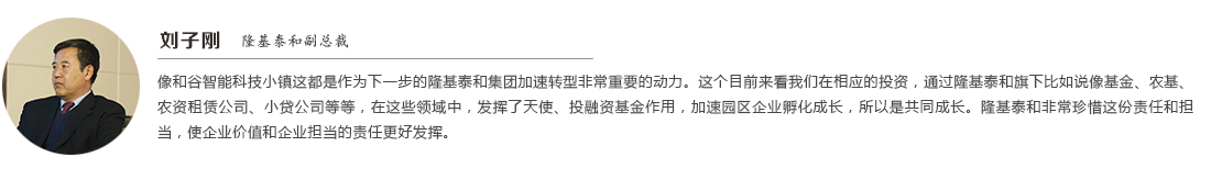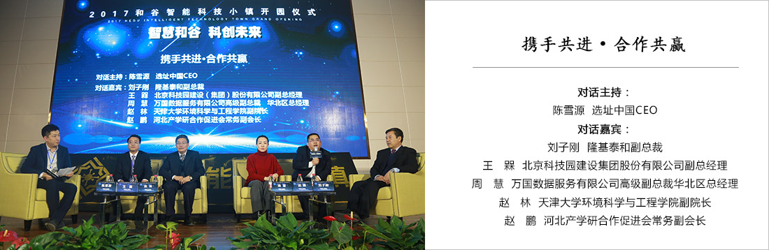 2017年11月21日,由隆基泰和·和谷智能科技小镇联合主办的“智慧和谷·科创未来”2017和谷智能科技小镇开园仪式在河北高碑店市举行。受邀参加此次启动仪式的有河北省科技厅副厅长蒋栋,河北省商务厅开发区管理处处长唐金江,河北省科技厅平台与基础处处长李同正,保定市科技局副局长裴冬梅,国家发改委城市和小城镇改革发展中心学术委秘书长、研究员冯奎等以及高碑店开发区相关领导、各界企业代表人,参会人数超二百人。