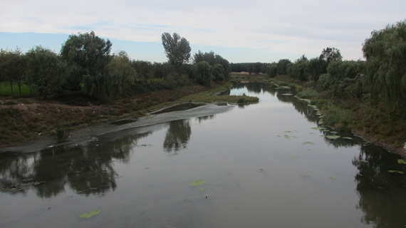 沿着窑管路朝别墅方向走,在千章墅项目旁边,一条南北走向的河流,村民说是小中河。项目宣传的“水多”难道就是这?已经快要干涸的河流、两旁杂草丛生、河里都是污泥、站在桥上,一股臭味迎风飘来。