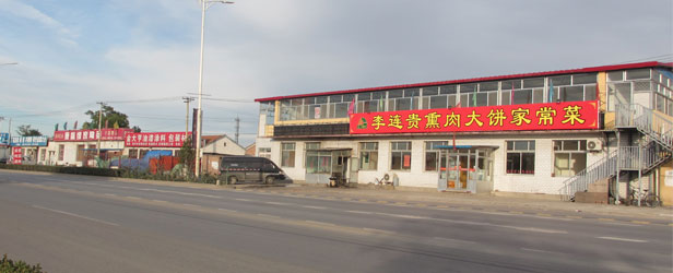 记者实地探访中,没有发现一家稍微上档次的餐饮点,旁边的夹在在钢材店等均为常规小饭馆。记者走了几百米,除了驴肉火烧等小餐馆,稍微好点儿的就是一家李姓人家开的熏肉大饼家常菜的饭馆,然而临近晚饭点(五点),不见有什么人。附近的村民告诉记者,4公里以外才有中上等的餐饮服务。