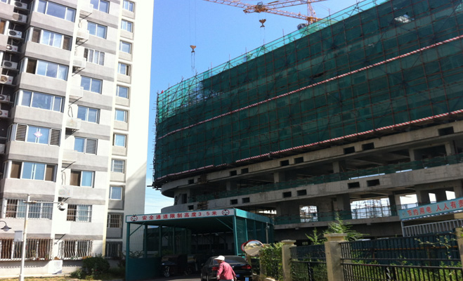 热心的王大妈也跟记者反映:她所在的3号楼隔断墙只有薄薄一层,毫无私密性科可言,“我们三号楼暖气管是4分的,其他楼都是6分的这不是明摆着偷工减料么。”她还反映自家的房屋采光受到了影响“现在新建的楼距离我家不到四十米,你看中午11点都没有阳光。我们也找过开发商几次至今没有给出答复。”