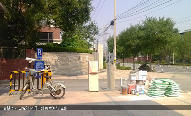 另外,小区门口与墙外路面堆有一些维修材料或砖石,或给行人造成一定不便。据一位刚走路出门的业主先生对记者反映,社区内的绿化环境与住宅质量基本无从挑剔,但因现在小区的入住率不高,卫生打扫似乎不很及时,像电梯间、走廊、过道等公共设施空间的清理、清洁工作他个人希望还能再多作改善。