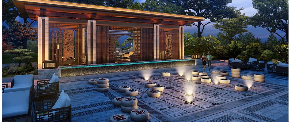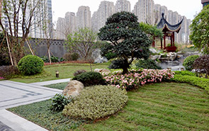 项目秉承“移天缩地在君怀,九州胜景汇一园”的理念,形成九天阊阖、如意洲、弈博云天、别有洞天、东湖云海、西岭烟霞、八音凝涧、沧浪亭、瑶合天香九大园林景观,命名为“九州胜景”。整座园林在景观的设计与雕琢上细致入微,从叠石理水,到亭榭花木,无不体现设计者和建造者高超的专业水平及匠心精神。值得一提的是,泰禾金府大院遍寻全国,得来院中成树200余种,挪树造园,可见金府大院在园林景观上的用心。