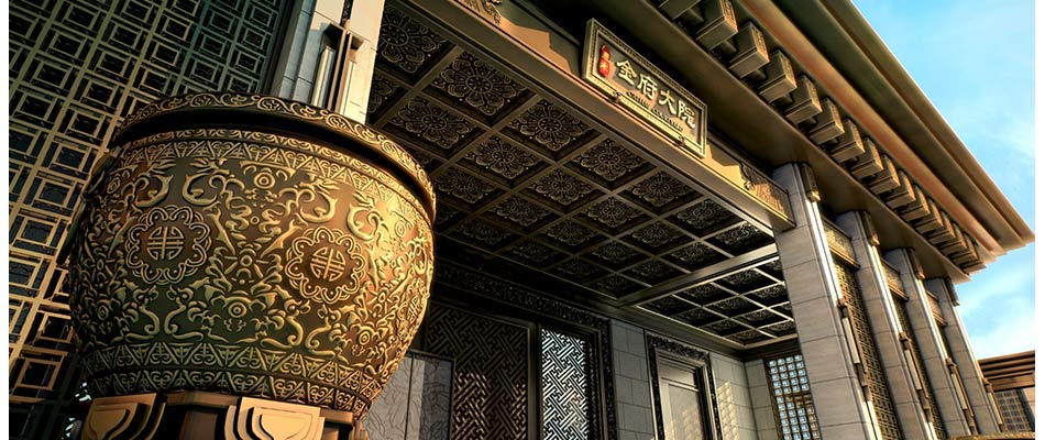 泰禾金府大院将中国文化的保护巧施于园林肇建之中,原味移植铜雕技艺、石桥营造技艺、曲阳石雕技艺、官式建筑、榫卯结构工艺、铜器制作工艺、赏石艺术、御窑金砖、建筑彩绘九大非物质文化遗产,呈现“蓬莱仙境”影壁、“月映冬青”石桥、“龙生九子”抱鼓石、“重檐庑殿”屋顶、沧浪亭斗拱、纯铜聚宝盆、“寿”形太湖石、金砖立铺、雕梁画栋九处非遗景观,点染九州胜景,匠心传承中国文化精髓。