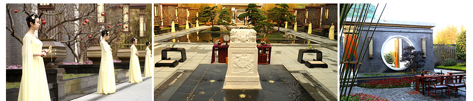 项目汲取中式精髓,首创中轴对称、大院围合、中式立面、重檐庑殿、中式漏窗、全铜铸门、匠刻雕工、三进门第、琅嬛石阶匠世九则,不仅在建筑上延续中式传统文化,在传承中式礼序的同时,也处处彰显匠心。整个大院由4米高墙围合,通过考究的大门、屋顶、高墙、园林、厅堂,层层递进,实现了中式传统的院居空间、四方围合的格局礼序,一院通感天地,让久困于喧嚣的人们,回归自然,尽享宁静致远的生活趣味。