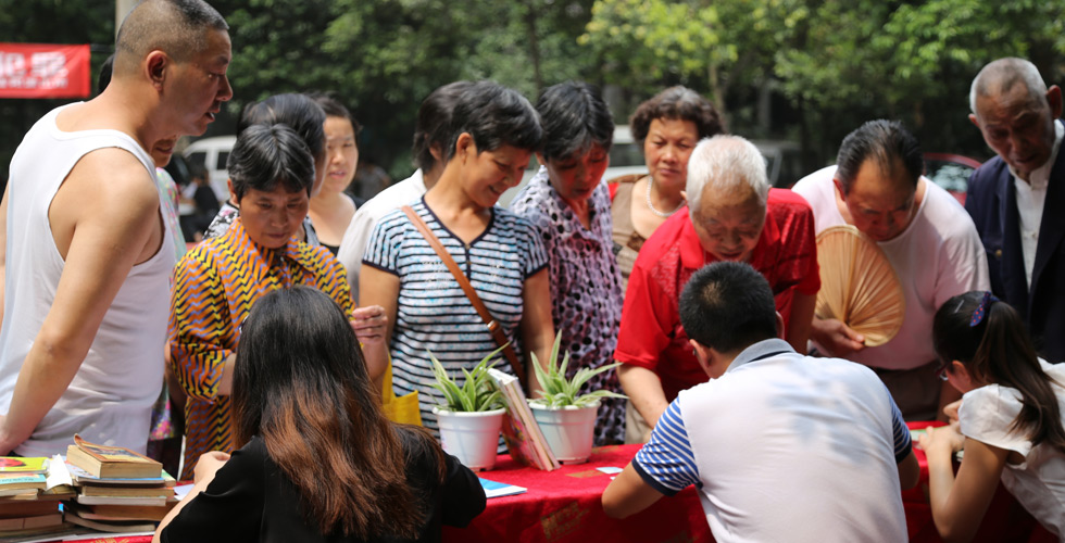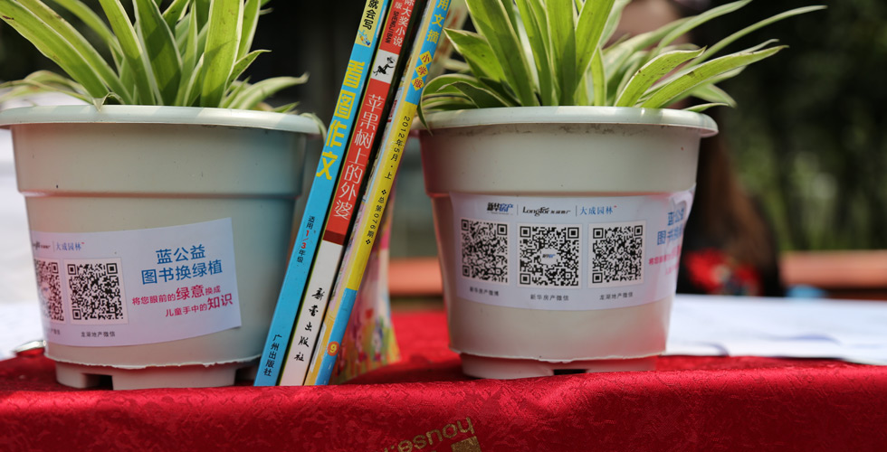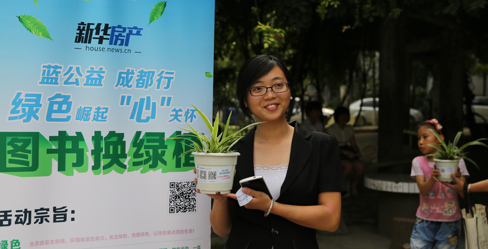 “绿色、健康、爱心”在这次活动里得到了完美体现。现场由成都大成园林提供绿色植物数百盆,社区居民都可持旧书来换取。