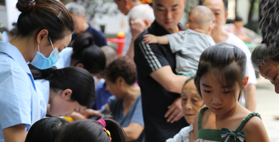 7月4日下午,新华房产成都站携手龙湖地产走进位于武侯区晋阳街道的吉福社区,举办大型“蓝公益-绿色健康行活动”,邀请健康专家为居民举行免费义诊。