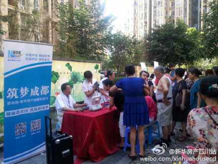 7月24日,新华房产将携手蓝光地产走进成都建兴路社区,为社区居民送健康。现场更有蓝卡高端医疗倾情加持,为居民进行义诊。