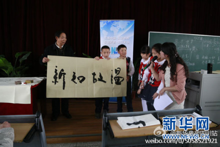 4月10日上午,新华房产成都站特邀中国书法家协会理事、陕西省书协会员巨虎民老师走进成都新都区西街小学,践行艺术家群众路线。巨老师现场挥毫,赠送墨宝,为现场师生呈现了一场文化飨宴。巨老师寄望于师生可以多研习中国书法,多诵读国学经典,传承五千年文明,共同为实现伟大的“中国梦”而努力奋斗。新都区教育局局长黄兴文出席了本次活动。 巨虎民老师书写“汝玉之恒 妙不可言”雅赠中国语文界泰斗支玉恒老先生,提倡尊师重道,弘扬师德。支玉恒老先生系全国著名特级教师,多年来致力于小学语文教学与研究工作,其教学以新、实、活、深、巧见长。此次受新都区教育局之邀到新都区西街小学参加“支玉恒教学艺术”研讨活动,旨在进一步促进教师专业发展,提高教育质量。 |