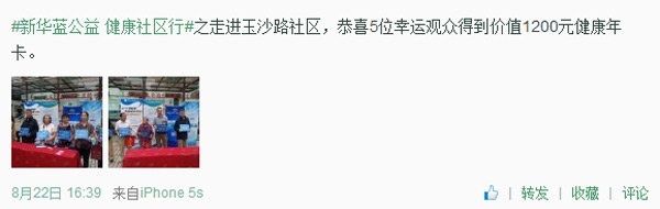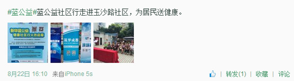 新华蓝公益走进成都玉沙路社区 健康送居民