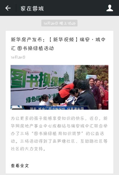 10月18日上午十点,瑞安城中汇与新华网房地产事业中心成都站“图书换绿植 用知识筑梦”蓝公益活动第二场在百佳庭院温暖举行,本场活动也得到了荷花池街道互助路社区的大力支持。