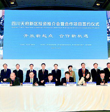 升为国家级新区的四川天府新区正越来越吸引全球知名企业的目光。1月23日上午,以“开放新起点 合作新机遇”为主题的四川天府新区投资推介会暨合作项目签约仪式在成都举行。省委书记王东明,省委副书记、省长魏宏出席投资推介会并见证一批合作项目成功签约。