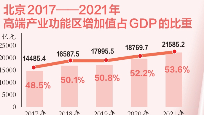 北京人均GDP五年涨四成继续领跑全国 高端产业功能区撑起首都经济半壁江山