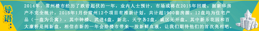 新推房源:二期房源 开盘时间:1月 户型面积:待定 开盘价格:待定 开盘折扣:待定 咨询热线:69695555 项目地址:常州市钟楼区通江路176号