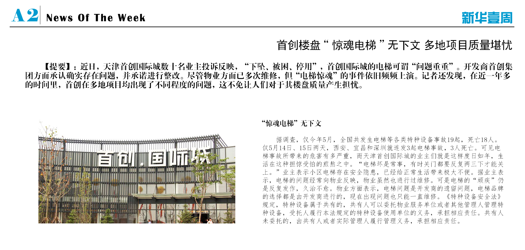 首创楼盘"惊魂电梯"